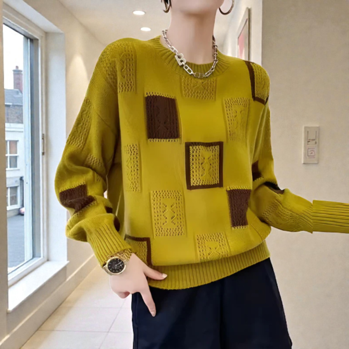 Avec BLANDINE™ | Pull Géométrique Élégant, vous ne choisissez pas seulement un produit – vous choisissez une vie pleine de liberté, d’élégance et de joie rayonnante.